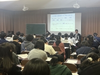 講師の竹前さんは本校の卒業生で、NGPの前身であるSGHで課題研究に取り組んだり、班活や学校生活の話もしてくれて、生徒たちにも身近な先輩でした。貴重な機会をありがとうございました。
